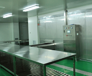 整臺設(shè)備設(shè)計(jì)制作均符合中華人民共和國«食品單體速)東裝置»及商檢出口要求。 庫內(nèi)外結(jié)構(gòu)均采用不銹鋼SUS304,全部為氬弧焊接。蒸發(fā)器采用大片距鋁合金組片管組,其他均為不銹鋼SUS304,充分蒸發(fā)面積,換熱效率高,充分考慮進(jìn)出貨溫度的影響,設(shè)計(jì)令結(jié)霜滯后。風(fēng)機(jī)為不銹鋼SUS304風(fēng)筒、支架、鋁合金扇葉高效率低噪音,軸流風(fēng)機(jī)采用外部集中水箱控制均勻小沖落,防止細(xì)菌繁殖,清潔衛(wèi)生,在庫內(nèi)沒有衛(wèi)生死角,不會藏污納垢,符合食品衛(wèi)生的要求 。